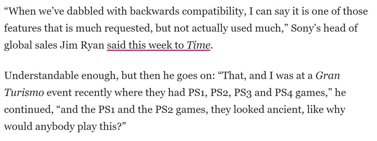 Further the move to game pass and Netflix-style libraries pumps value back into the b-tier and older games. Theyâre always hungry for âcontentâ to hit every niche and nostalgia plays are pretty successful to say the least. Sonyâs sitting on 25 years of history to bind people to a Playstation Plus subscription that theyâre not using. (and honestly, if they were doing this, youâd expect them to hold their old party line until they reveal a library of classic titles, available today! and turn on a dime)