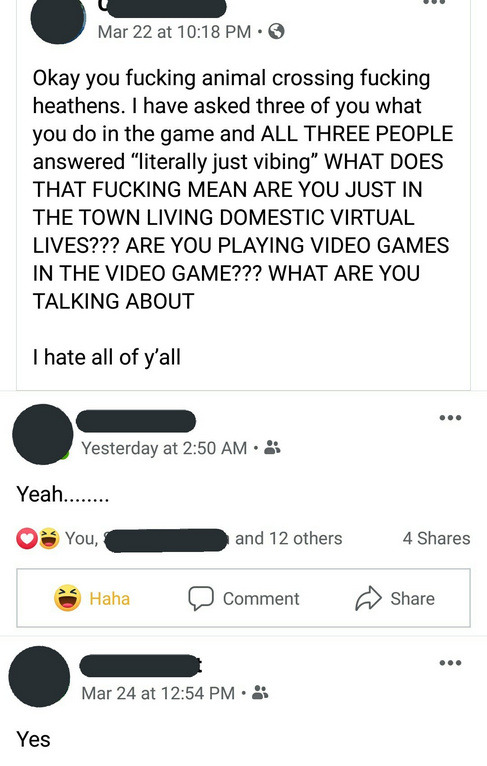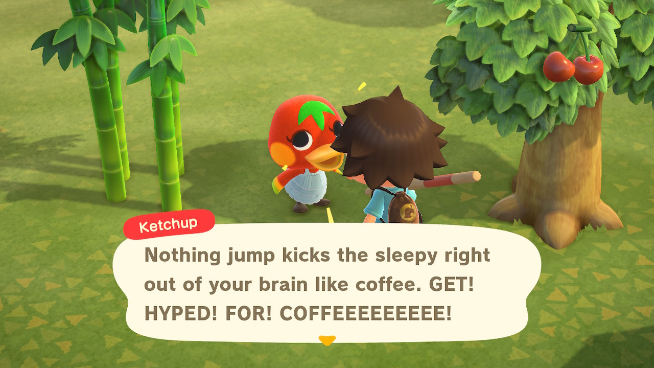 Like its a game about living a nice life in a town yeah but you also get to dress yourself and decorate your house and decorate your town and you can even make clothes and the fish and bugs have specific conditions from weather and season and time of day and there’s so many lovely animals who come visit you
