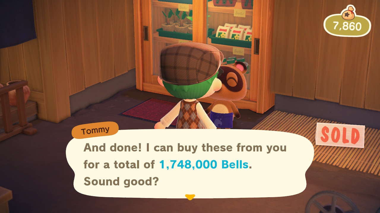 I decided on something of a whim to gather up all my turnips and just see if anybody online had better prices than I did, just visiting friends at random. The first town I visited, it was already after 10:00 PM local time, so I thanked my host and moved on. The second town I visited was 9:45, and the price—well, the price was right.