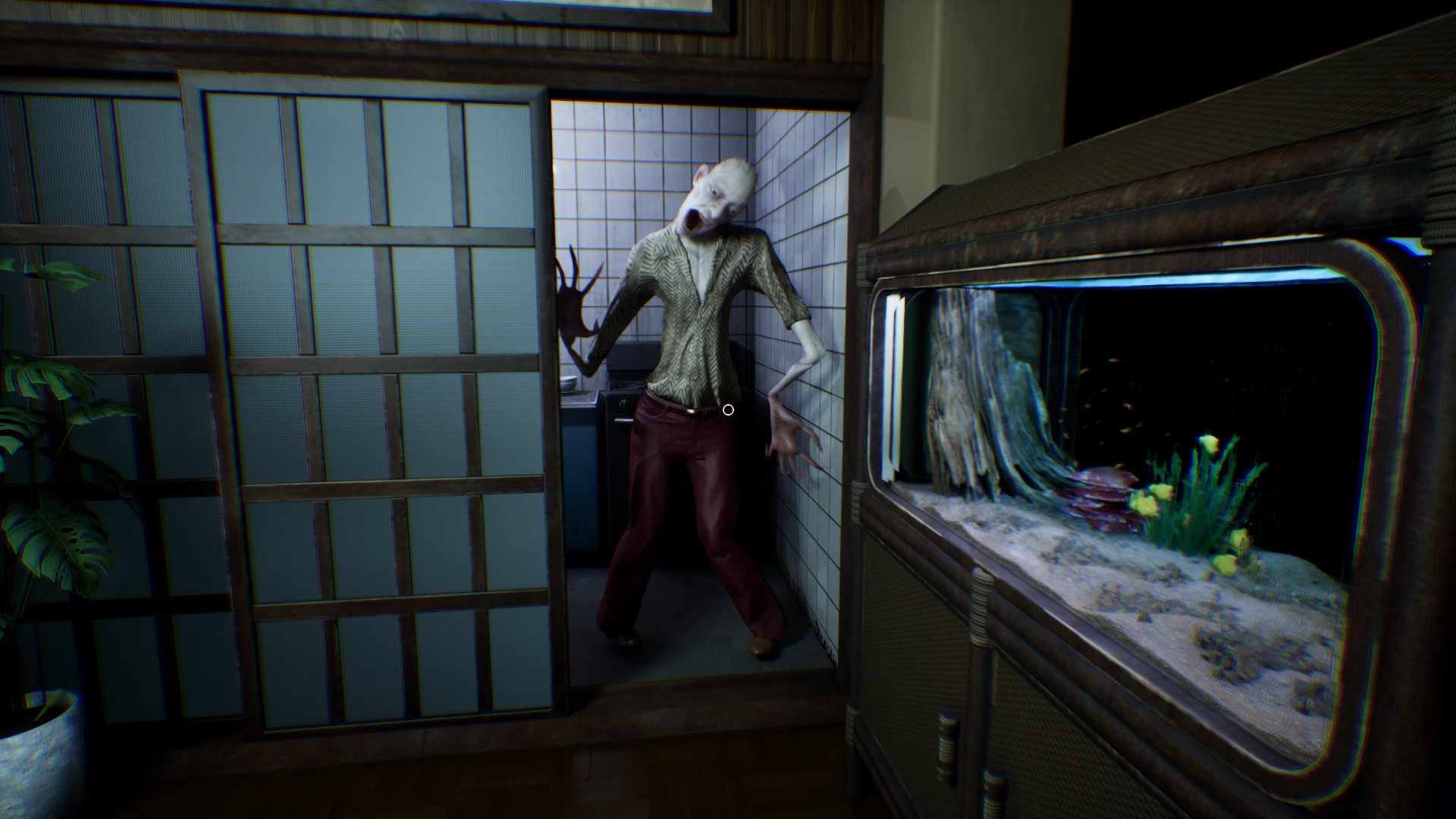 First and foremost, you lose the agency to mark an area good or bad. Instead – like PT – your goal is to get through the door at the other end of the train car. Some of the anomalies are purely cosmetic, like the overhead lights flickering or bloody handprints appearing on the walls. Others require you to “spot the creepy thing” in the train car – there’s no fail state to these ones, you just can’t progress until you spot the creepy thing. Many of the cars, however, have monsters in them, and if the monster catches you you get a little jumpscare, which comprises the only fail state that makes you start over from zero. As such, Platform 8 takes most players much less time to complete than The Exit 8, where you’re carefully scouring the area for any subtle anomalies, and then holding your breath as you turn the corner at the end of the hallway to see whether your score has increased or reset.