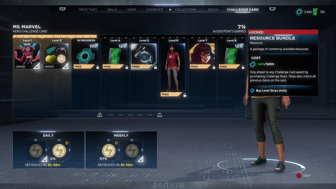 And I want to stress “for your characters”, because each character seems to have their own Challenge Cards and daily and weekly challenges for leveling up their cards. If that sounds like a lot of work you’re in luck because you can of course buy and spend premium currency to buy level skips on your challenge cards.