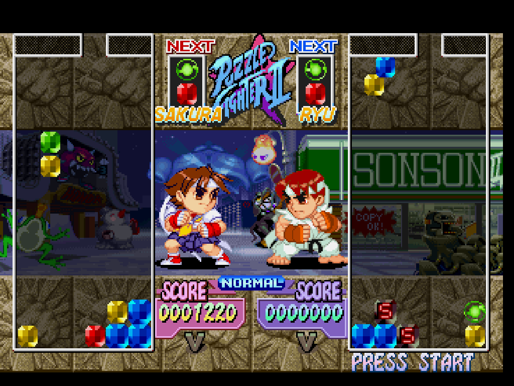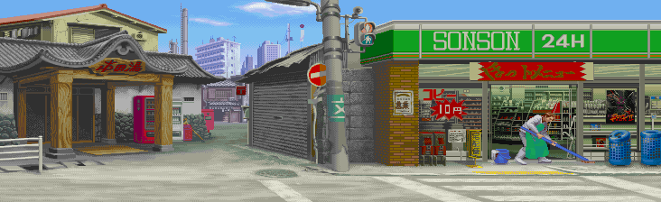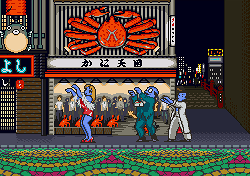 a gif from the neogeo game zupapa, featuring flatwoods monsters and adamski-type ufos