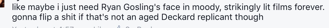 Oh I will definitely see this though, didnāt want to give the wrong impression. I like Gosling enough, he was good in Drive I thought. He is supposed to be good in The Nice Guys, but I didnāt watch that yet.