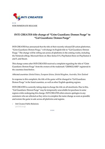 Oh oops, I didn’t read the statement and assumed they were changing the name to make the galgun connection more obvious ![]()