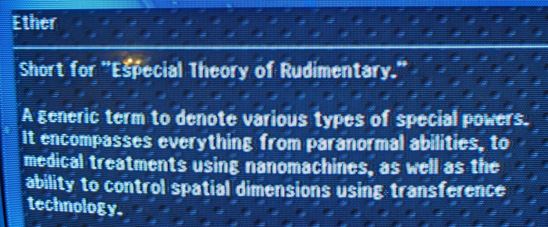 The encyclopedia in this game is wild. Like aside from the parts where it talks directly to the player about the games as a series of games, it also just has some amazing entries.