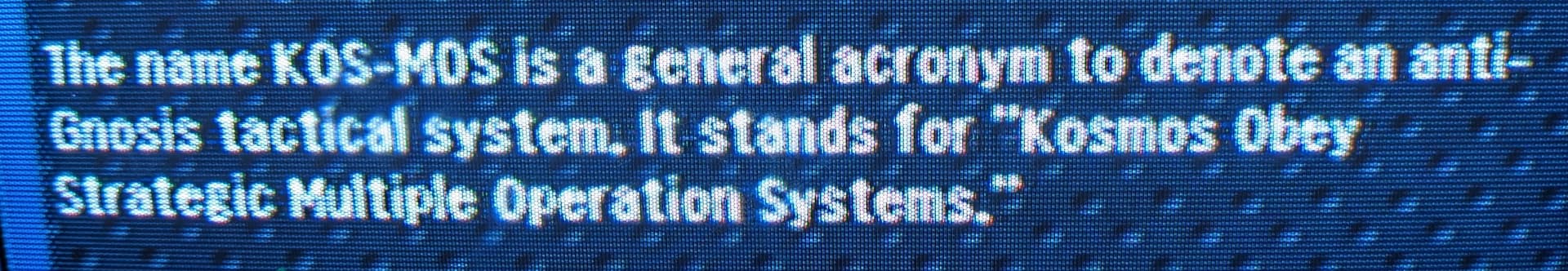 I fucking love when an acronym includes the word for the acronym in the acronym. This one makes me think about this storefront ministry in hte neighborhood I worked in when I was in Americorps called “CRACKhouse Ministries” where CRACK stood for “Christ Resurrects After Crack Kills” so there was just an endless repetition built into it right there. The funny thing about the KOSMOS one is that you never get past saying just KOSMOS because the K always stands for KOSMOS.