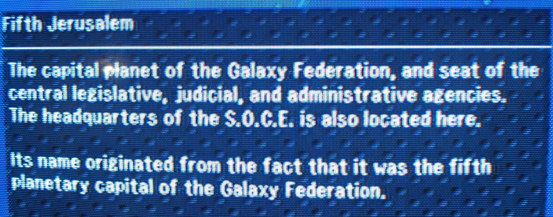 Nobody really says shit about the previous four Jerusalems. Or really the OG one. Or why that should be the name of the capital planet of the galactic federation, but who cares.