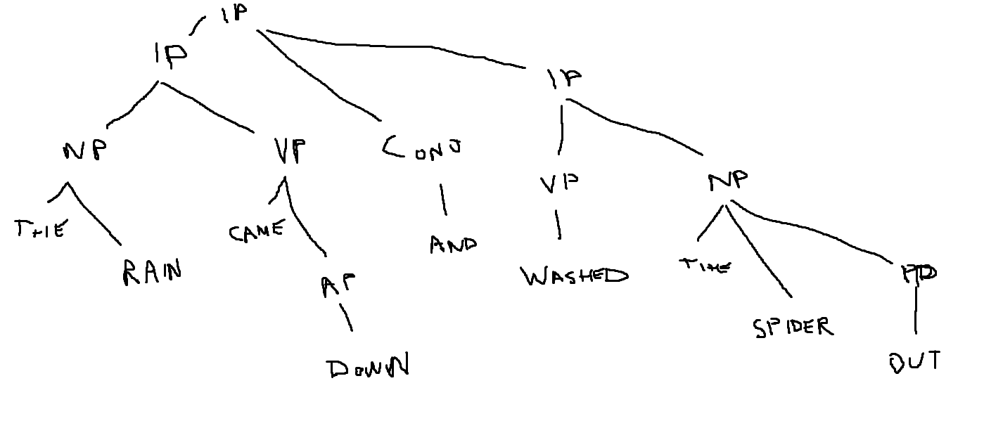 some things i understand less with time. i feel like i need a sentence diagram for ādown came the rain and washed the spider outā