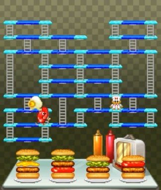 as the burgertime liker i will tell you that the mobile java version “burgertime delight” explicitly had tiny peter dropping burgers onto a giant restaurant table