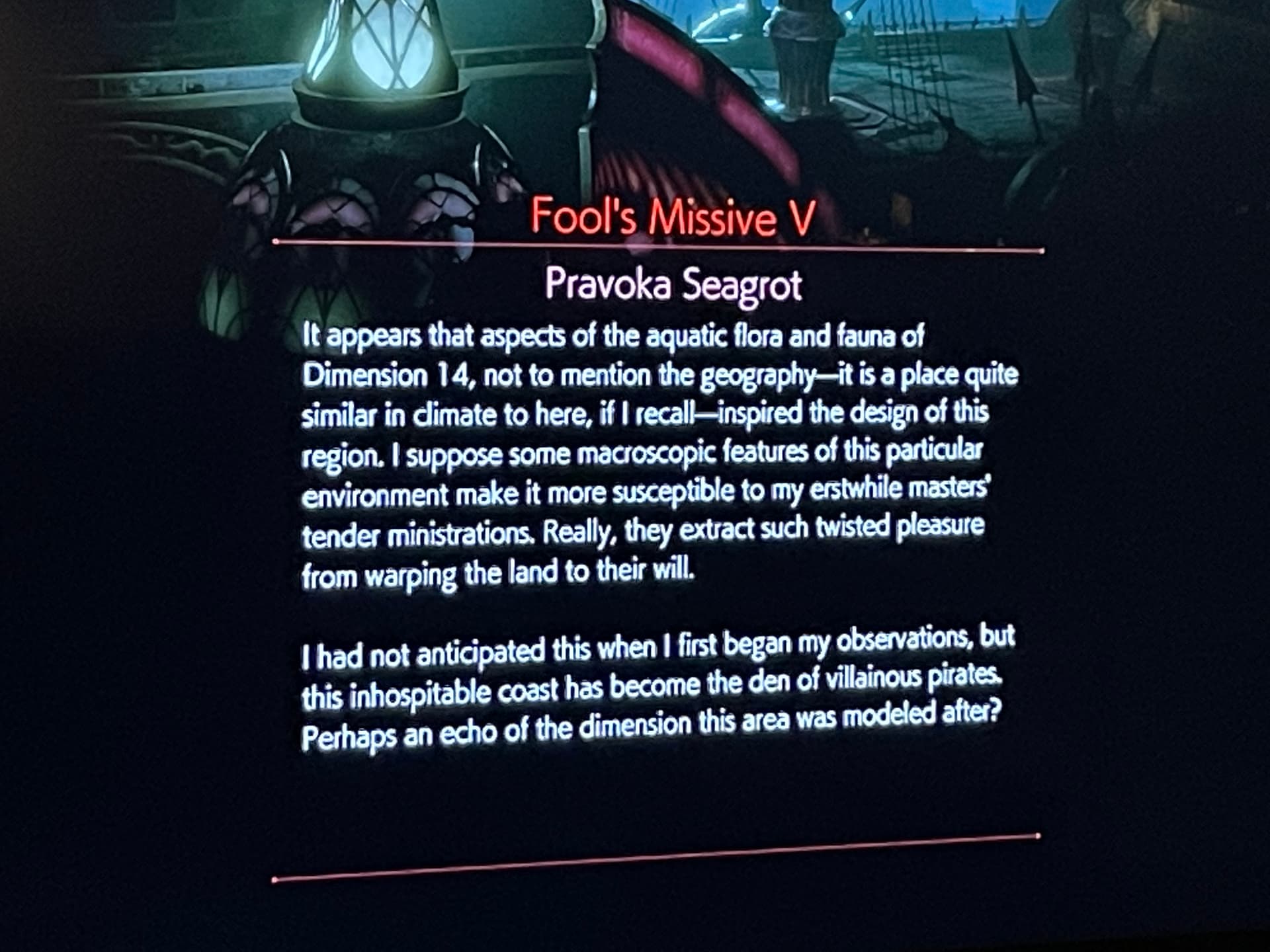 I played about 25 minutes of this game before cello practice today and it’s like a fever dream. It was like playing 5 minutes of 5 completely different games. Everybody says a lot of dialogue but seemingly not to each other or about the same thing. You talk to people from a random menu and everyone is called like Jimothany and they wish you good luck on whatever your quest is and dress like people trying to steal as much clothing from Hot Topic as possible by wearing it all out of the store. There’s a montage in a field of wheat to My Way by Sinatra presaging the combat tutorial. I think this is like a video game version of the Yellow King and just looking at it has made me less sane