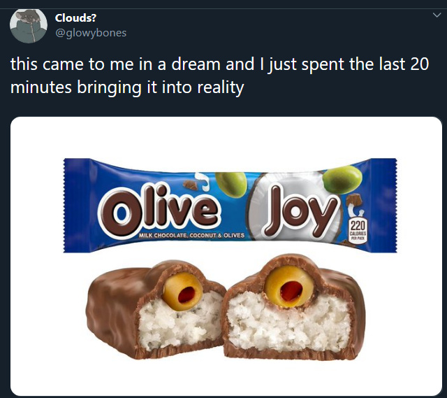 As someone who loves coconut, chocolate, and olives, I can not fathom combining all 3. I mean, at least not the style of olive shown