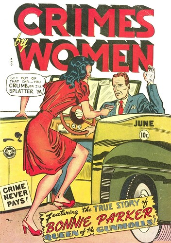 It’s good. It demonstrates a great affection for hot violent gangster women murdering dudes left and right while saying things like “Die, you yellow rat!”. They might have a male partner who bobs along behind going “Aw jeez, Gertie, we got the cash, do we really hafta kill 'im??” “Shaddup, you $&%*#!!” The code in this comic is “crime never pays”, so they always suffer a mandatory horrible death at the end.