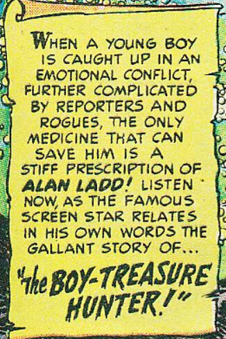 i’ve been having fun reading The Adventures Of Alan Ladd. now an important thing i should clarify: you may expect as i did that alan ladd would be “playing” different fictional characters in this book. this is untrue. in fact most of the stories are presented as untold tales of the hollywood movie actor alan ladd, as he repeatedly gets drawn into investigating voodoo cults, becoming a middleweight boxer as part of an fbi sting operation, getting drafted as sherriff to take down a gang of desperadoes etc. words cannot express the delight i felt at story after story where he goes “now look here, there must be some mistake! i’m movie actor alan ladd!” to thugs threatening him for location of various diamonds. it would also probably be a little less funny to me if i didn’t associate ladd mostly with his downbeat noir roles; it feels like finding out there was a “sensational tales of john garfield” comic where he takes time out from his movie career to investigate rumours of a haunted mine. sign me up for a stiff prescription today!