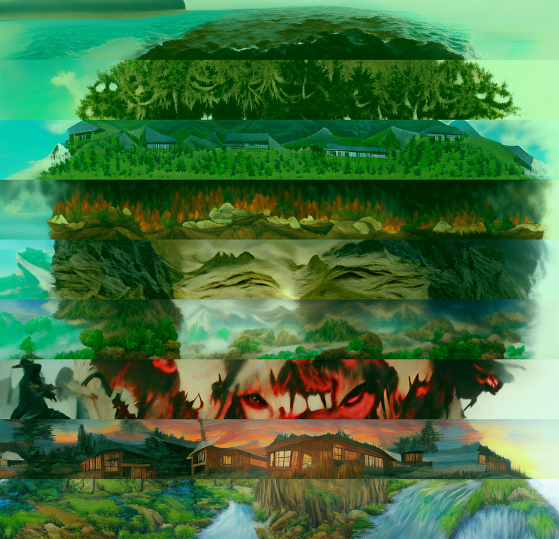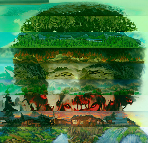 i cut an image into strips and did each strip w/ a different prompt and then stitched them back together