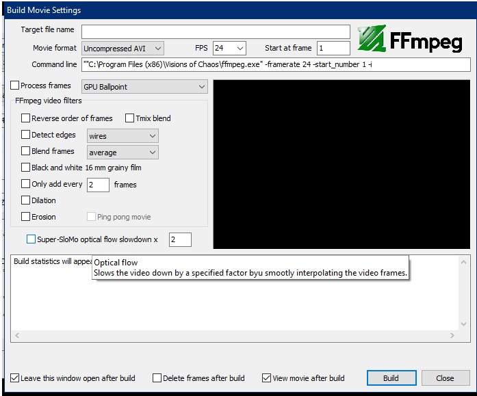 this is the built in video compiler, sometimes i try the optical flow setting if i havent made enough frames for a video that is more than 2-3 seconds worth of frames