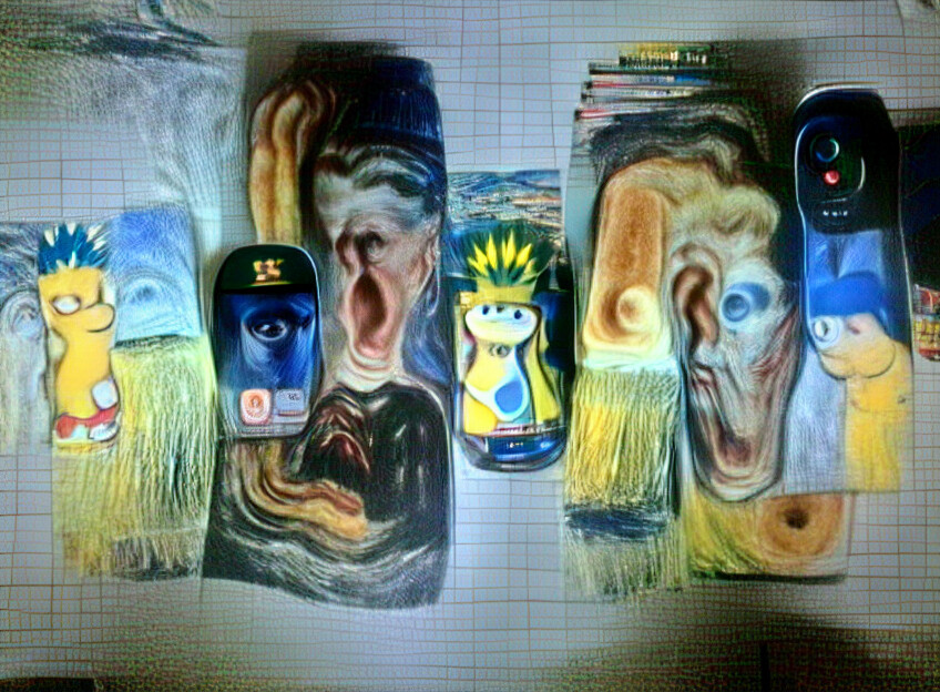 “bart simpson marge simpson edvard munch the scream” at 1 weight and “high definition” at .3 weight. It almost looks like something! I didn’t mess with any of the other settings.