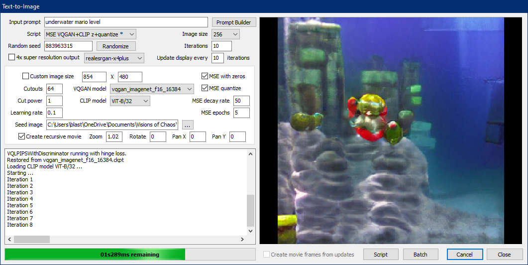 im using the software visions of chaos and the MSE VQGAN+CLIP z+quantize script