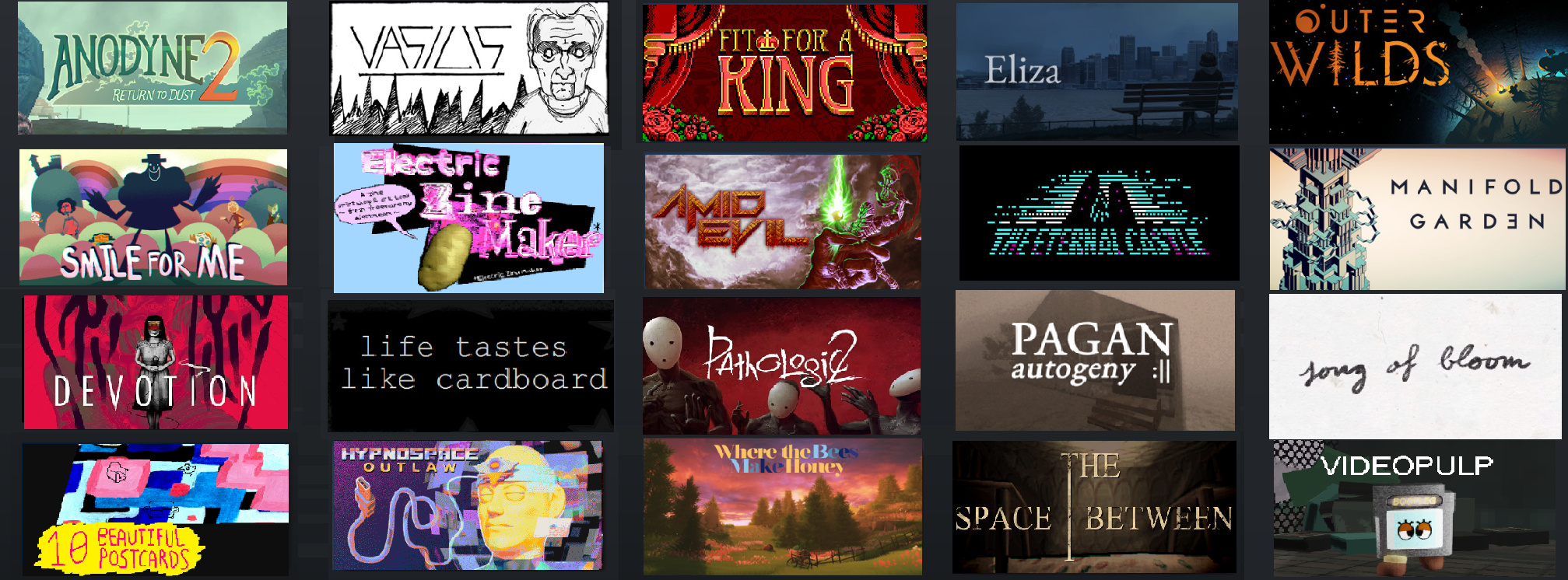 speaking of this… not strictly related but in the same spirit because i know Bennett has his whole blog recommending games and all that. i did a few “recommended games of the year” little graphics the last few years on twitter that are probably worth checking out.
