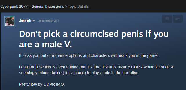 Is there any confirmation that circumcision actually does anything other than affect character appearance in game?
