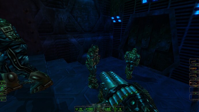 i made a post on here thats pretty old by now where i defended the game and im here to correct a grave mistakes i made the first time. the C4 launcher is actually awesome. yes the blast radius is fuckhuge and yes they give it to you in a level thats all corners. but said level is also a sewer packed with fucking frogs and dragonflies and these big asshole mech guys who shoot rockets at you, who get stuck on each other like a herd of feral animals trying to kill your ass, so you can set up prox mine ambushes with the C4s or just airshot them by detonating it mid air by hitting the weapon selection key again, the enormous blast radius means you can clear out entire groups of flying enemies or the little jumping frog fucks you can’t see or enemies behind walls. And this is how I feel even after i instakilled myself with it like an hour earlier immediately after a difficult battle. john caught me slipping and that one is on me