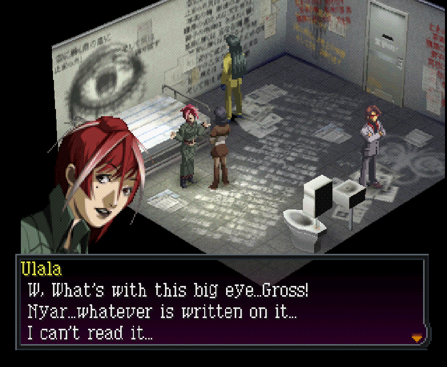 My favorite thing about this early line of dialogue is that it seems like it’s just a reference to the events of Innocent Sin, except those things never happened in this timeline, Jun’s dad is just a big weirdo and obsessed with conspiracy theories to the point that upon hearing the principal was murdered, literally like 15 minutes ago, he assumes it must be black magic nazis from the dark side of the moon doing it or some shit.