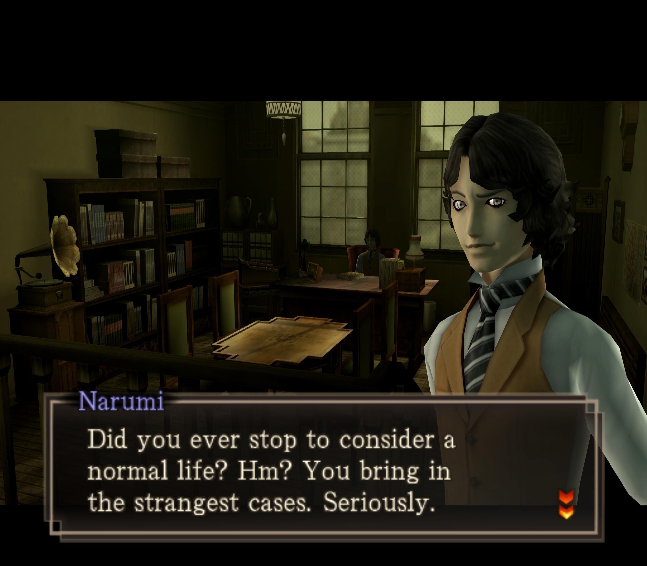 Also, if you have Persona 2: Eternal Punishment, the bonus disc has an interview with Okada and Kaneko, and they mention working on (or planning, it’s been forever since I’ve seen the interview) a game set in or around this time period. Cool to see them mention the game six or seven years before the game came out, and then to also see Kaneko came up with the design at the around the same time but for something unrelated.
