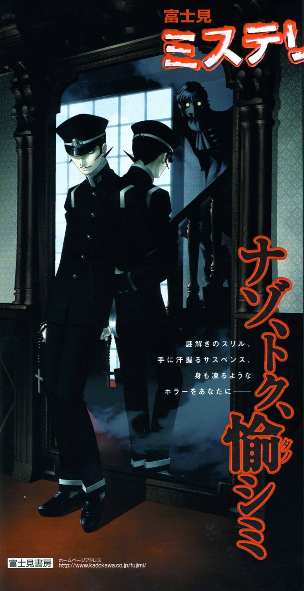 By the way, Raidou’s design was rehashed from a Kadokawa phone card Kaneko drew back in 2000. I love the “13” pin on his collar (also kind of interesting, related to the pin, is that the protagonist is the 14th person to bear the name or title Kuzunoha Raidou), which in turn is a rehash of Yasunori Kato from Teito Monogatari (M. Bison is also another character biting Kato’s style).
