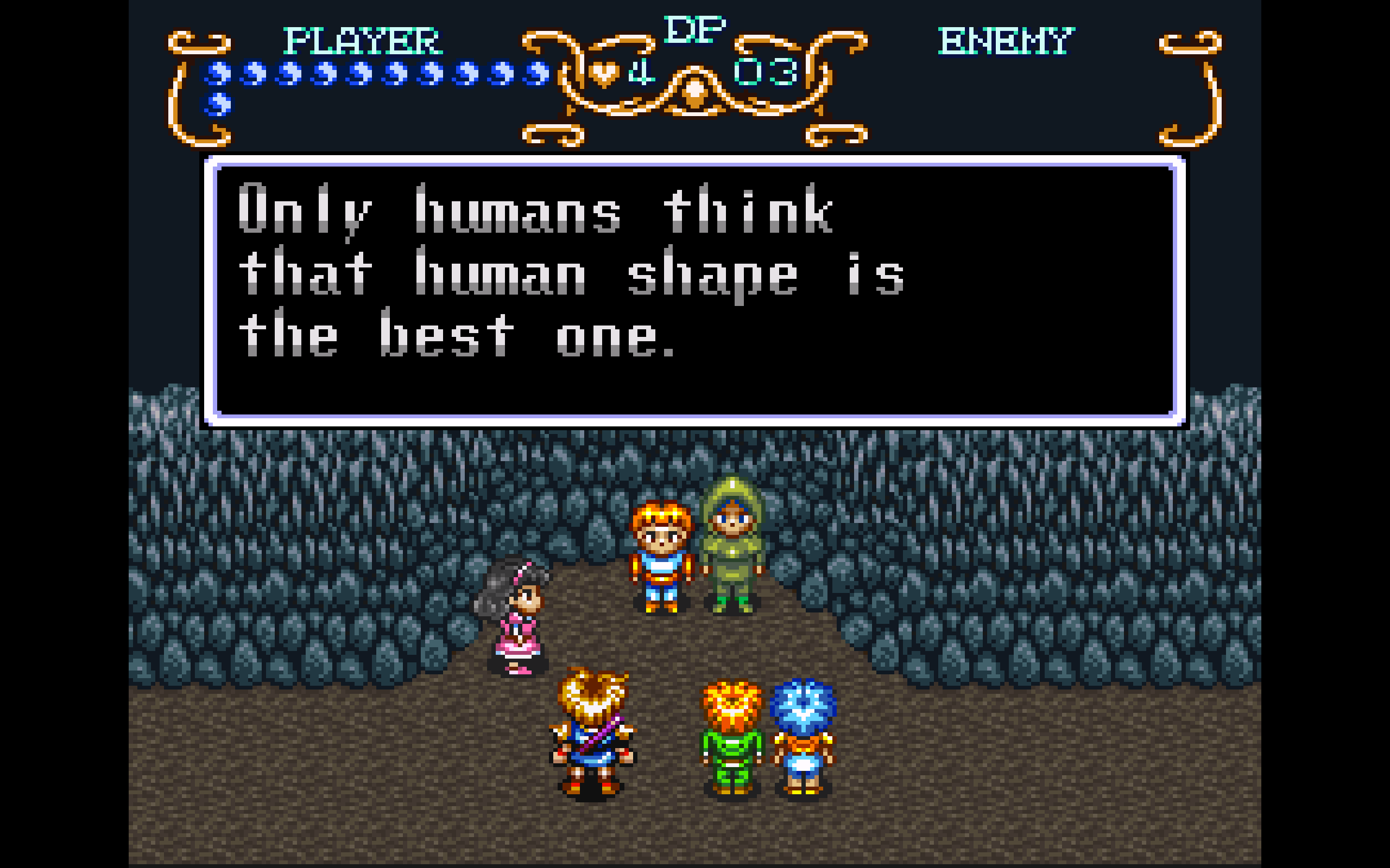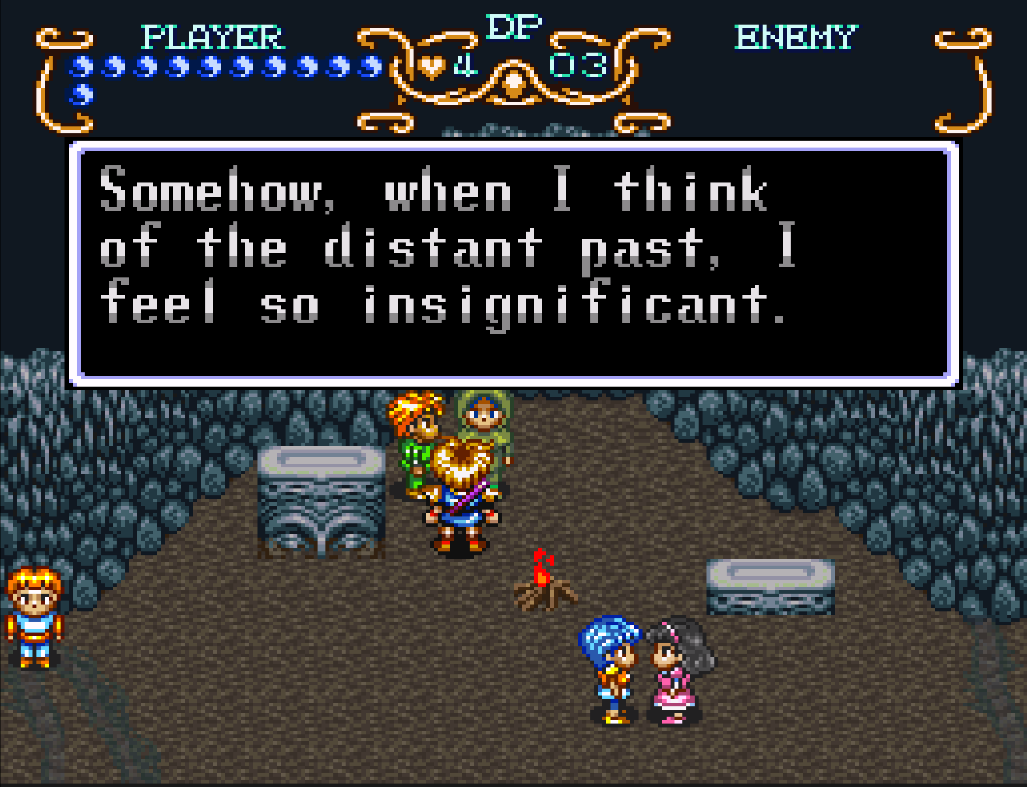 A lot of haunting scenes and commentary in Illusion of G/T, not only for its era (and Zelda-likeness), even more so for a very young player. Everyone remembers the pig but history’s mysteries and…all those depictions of innocence lost. Damn.