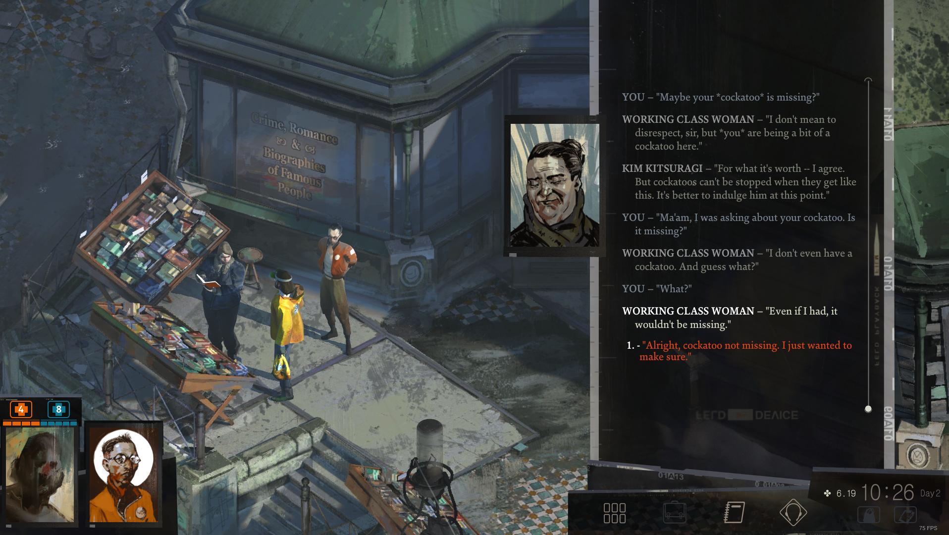 while disco elysium is not a game about birds, its writers clearly know cockatoos well