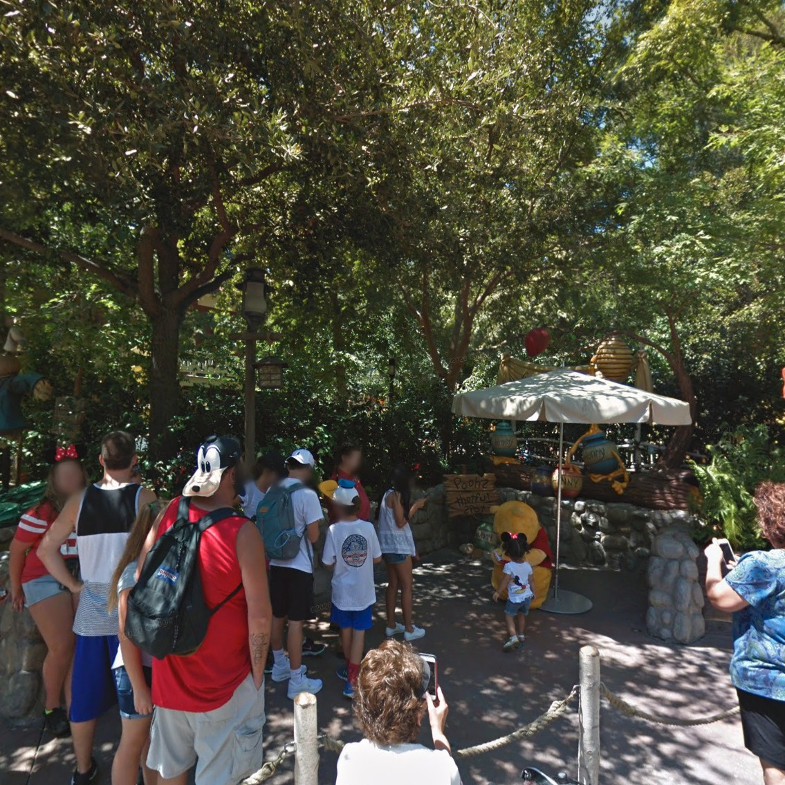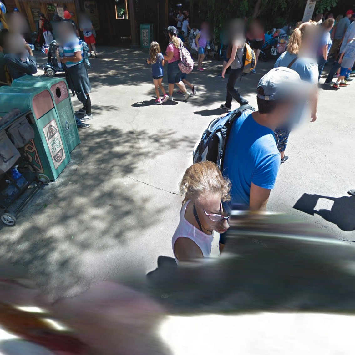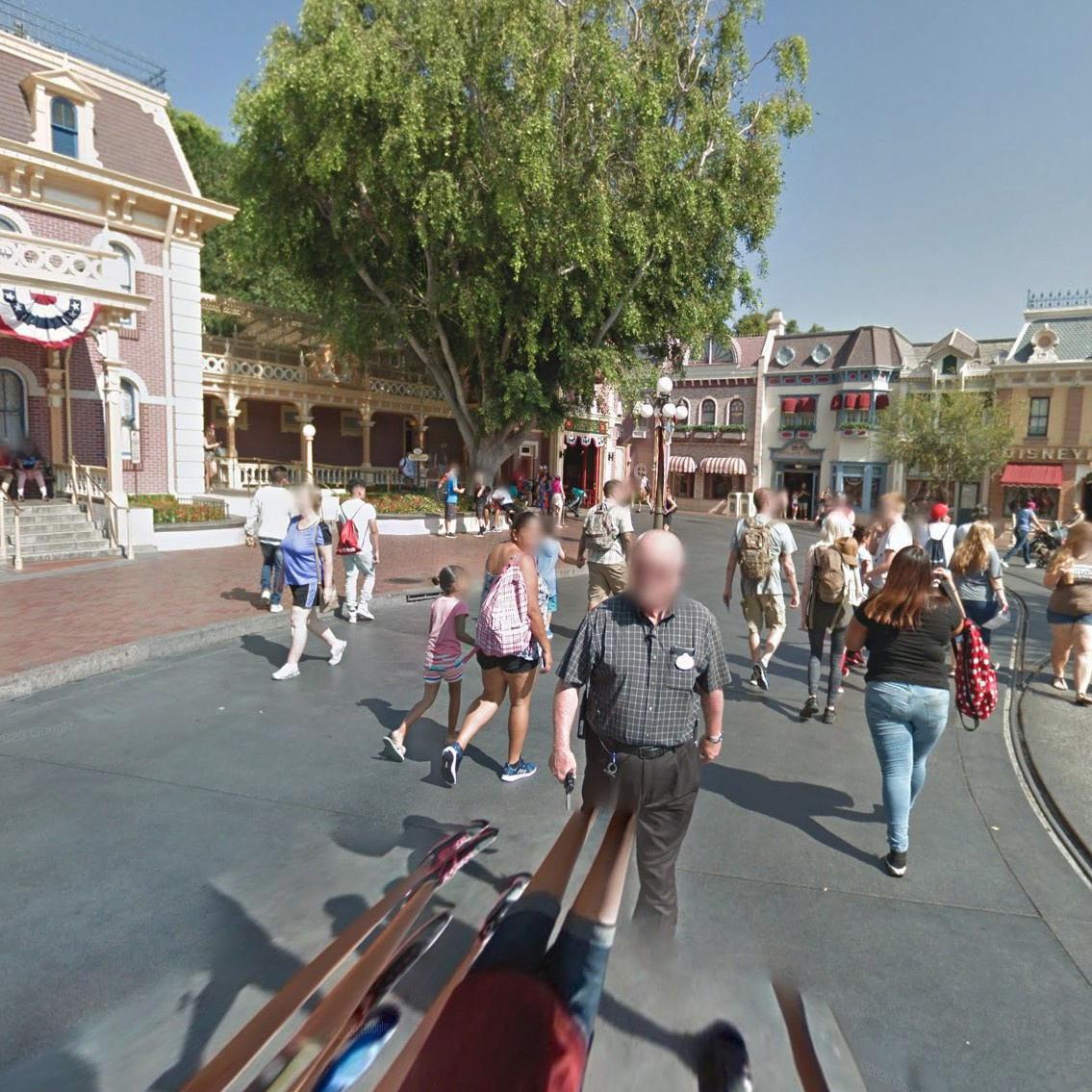 the blurred faces kind of simulate what it would be like if Disneyland re-opened during COVID and everyone was willing to wear masks.