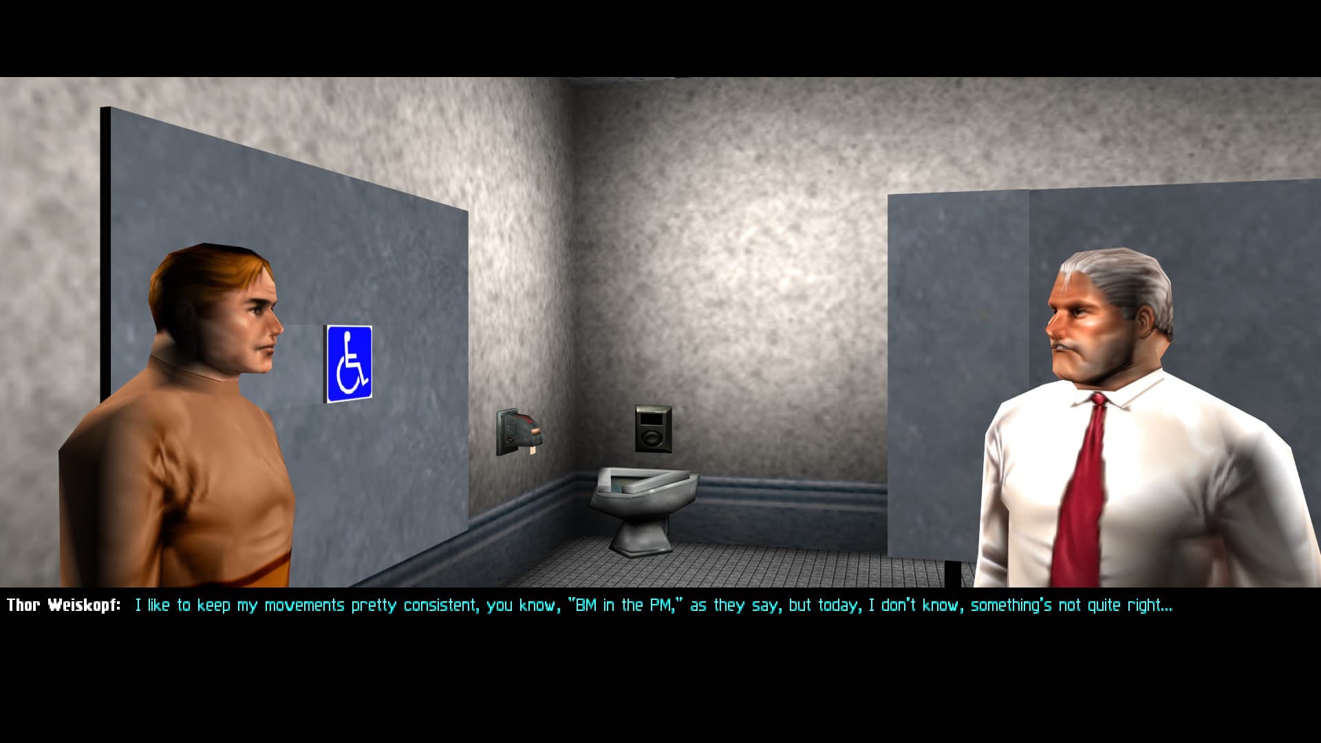 And this was just crazy to see play out in a videogame. It had none of the camp qualities you would notice if you overheard this in a game today, I think. I was really impressed by how sad the situation was, the resignation and the passion despite the low poly models and unprofessional VO.