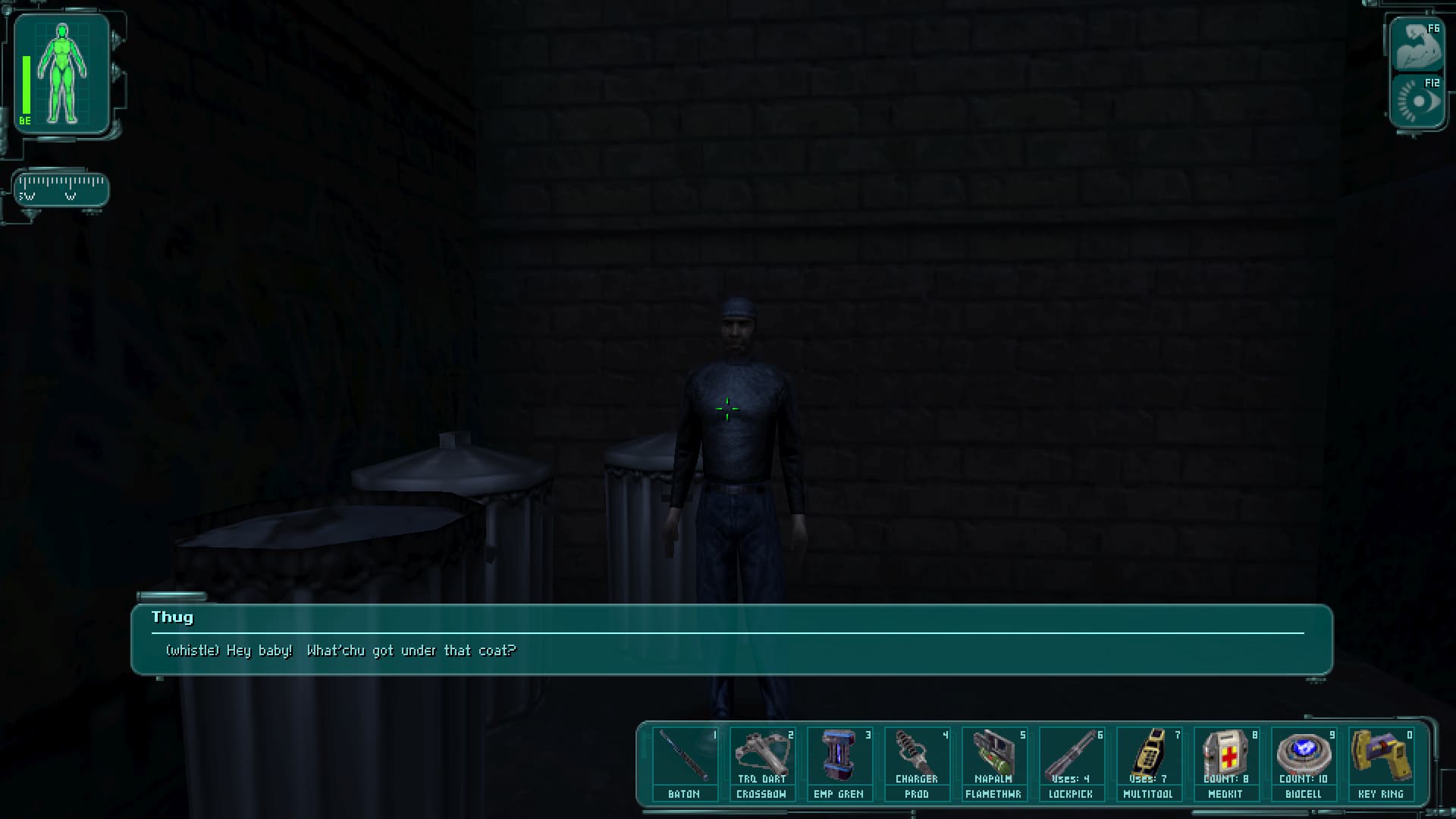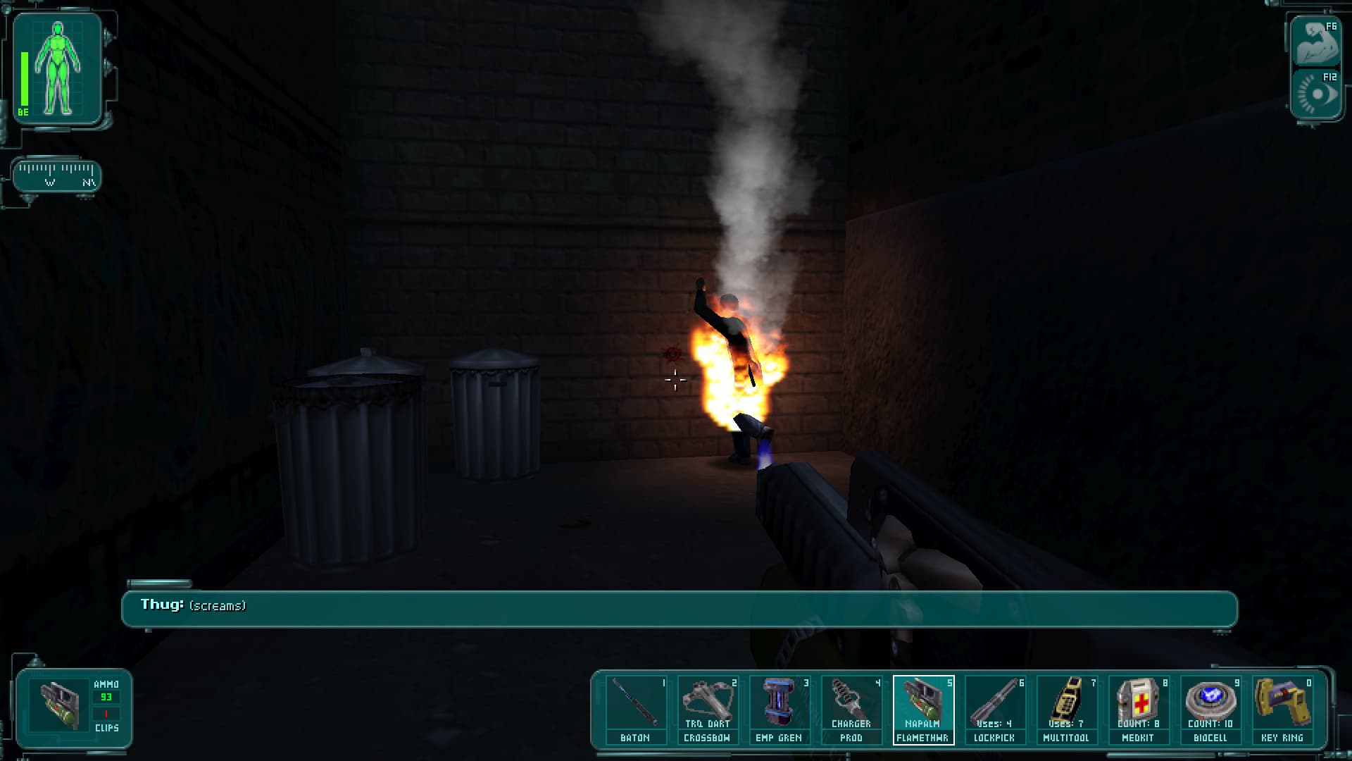2. different rewards for lethal vs nonlethal make sense in a mechanical way that i understand, but in a storytelling way i find it kinda depressing. something i love about Deus Ex and Thief 1-2 is that you are mostly disincentivized from killing guards by eavesdropping on them and learning what they’re like thru dialogue. like Thief mandates non-lethal play on Expert difficulty, but also when you listen to the guards, they seem like a bunch of working-class jobber goobers who don’t deserve to get shivved. in Deus Ex i try to avoid killing the NSF cuz they openly talk about being tired and scared and wanting to go home, cuz theyre likewise desperate recruits who joined up with a freedom fighter militia (an early hint that they’re actually the good guys). i freely kill MJ-12 guys because they’re in on the nightmarish conspiracy to plague the world via nanomites, but even their grunts have lines that shade them as punch-clock villains. the sailors are all a bunch of innocent schmos etc. The “morality” of killing these “enemies” is part of the narrative more than it is a risk-reward mechanic