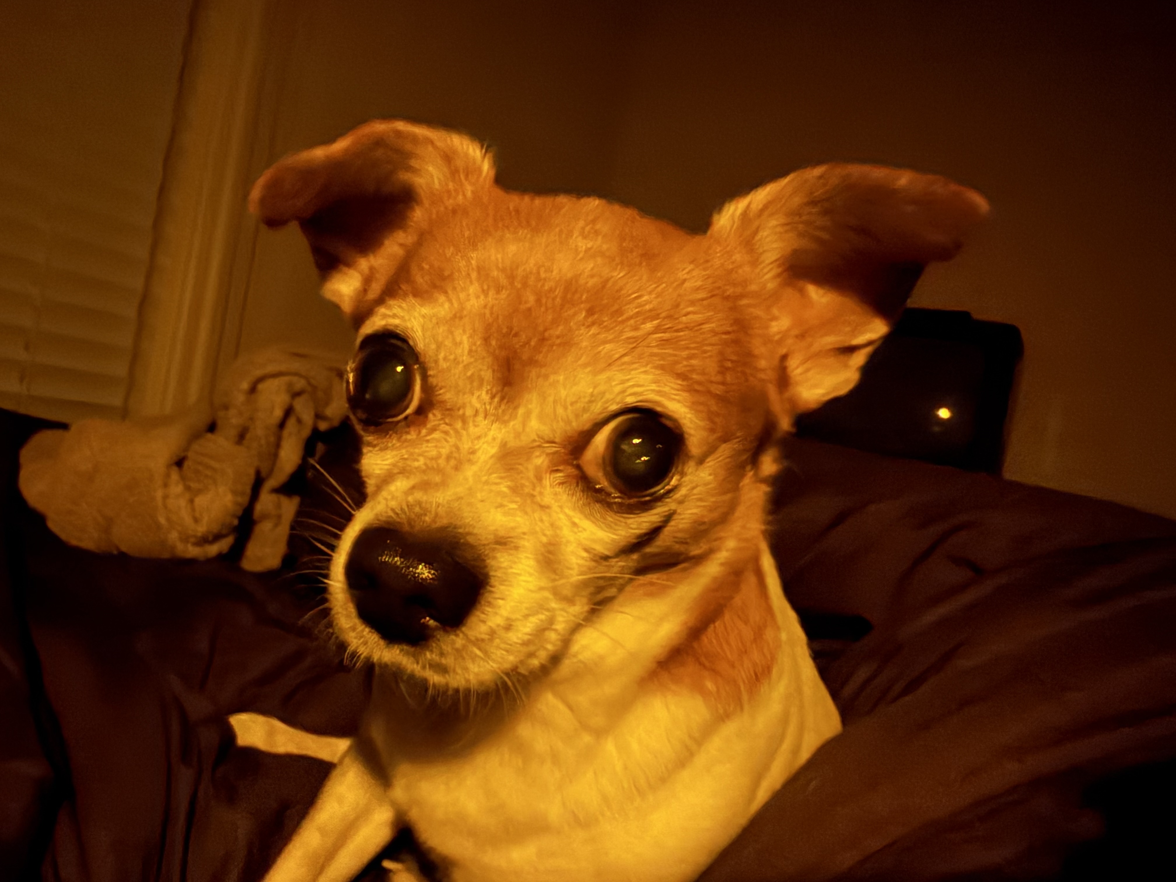 shes staring like that at you because you still havent brought home all this damn dog food. they knows its out there, waiting. and its rightfully theirs