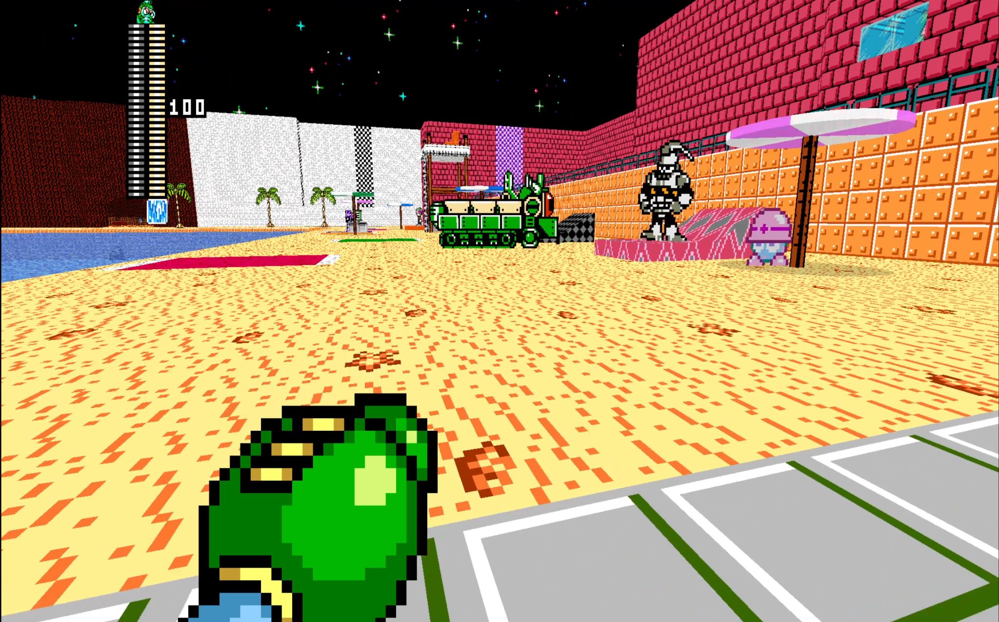 You choose your character from a VERY long list that included every Mega Man character I could think of, as well as a bunch of random other NES characters (I saw Bub from Bubble Bobble in there). Each have their own unique combat abilities, but this mod isn’t about combat at all. In some common spaces you can fight, but people were really there to chat and vibe out. The whole thing was soundtracked by a surprisingly robust playlist of upbeat chiptune music and city pop.