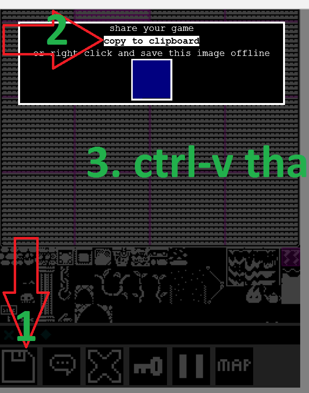Yeah, I clicked on the floppy icon and right-clicked/saved, but now I’m not sure what to do with that little png (saved to my desktop), and when I try to click the floppy icon it doesn’t respond now (maybe cuz I have the eyedrop tool selected by accident because you need to right click to save but there’s no apparent way to revert to the arrow?).