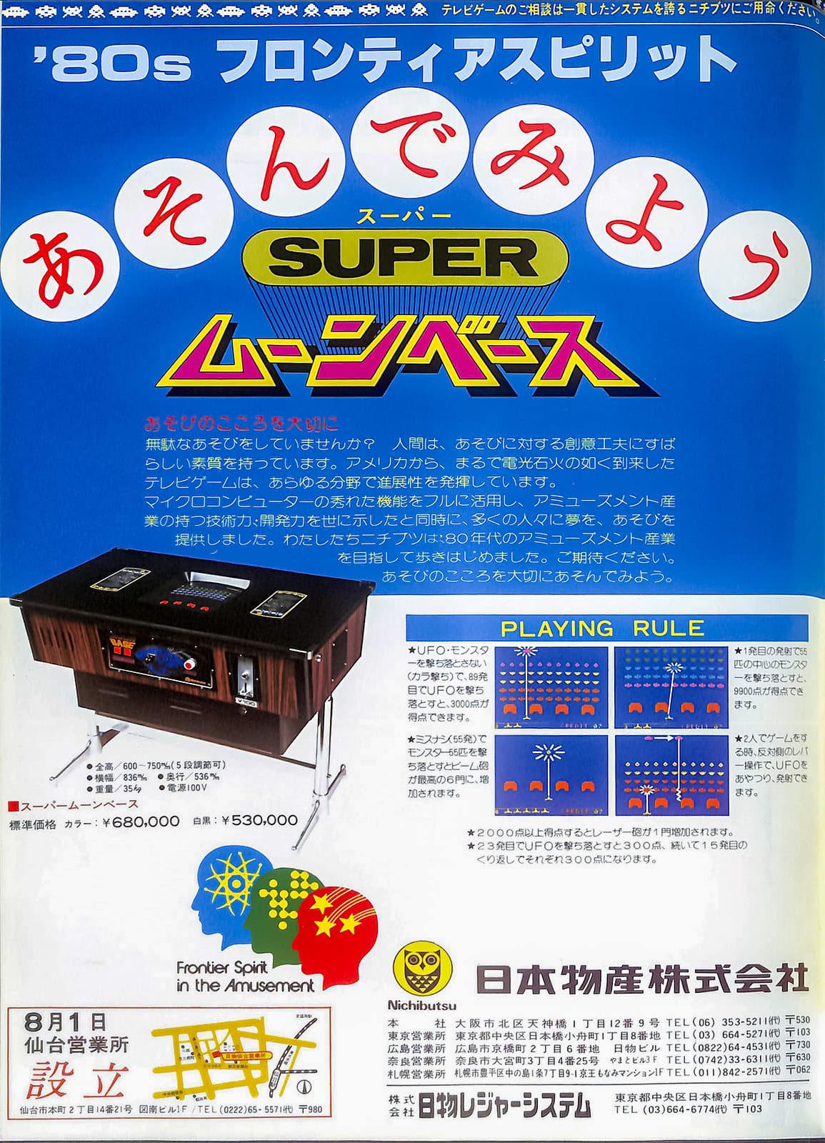 The score in Nichibutsu Invaders is so extreme that the 89th shot gives you 3000 points for the UFO, and the first shot gives you 9900 points for defeating the center one…