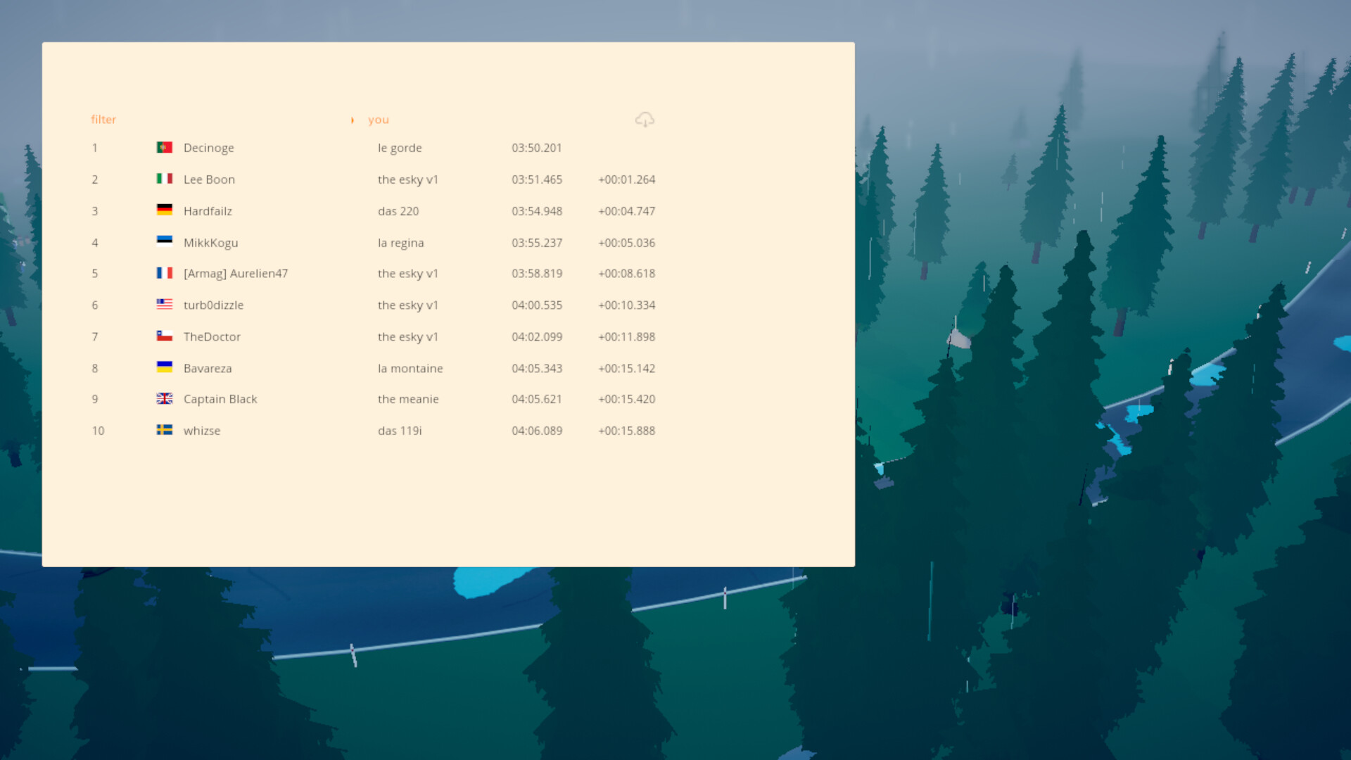 Instead of taking the next stage in Finland, I went right to the last in the same country and conquered it. Now I can attack this leaderboard in two fronts.