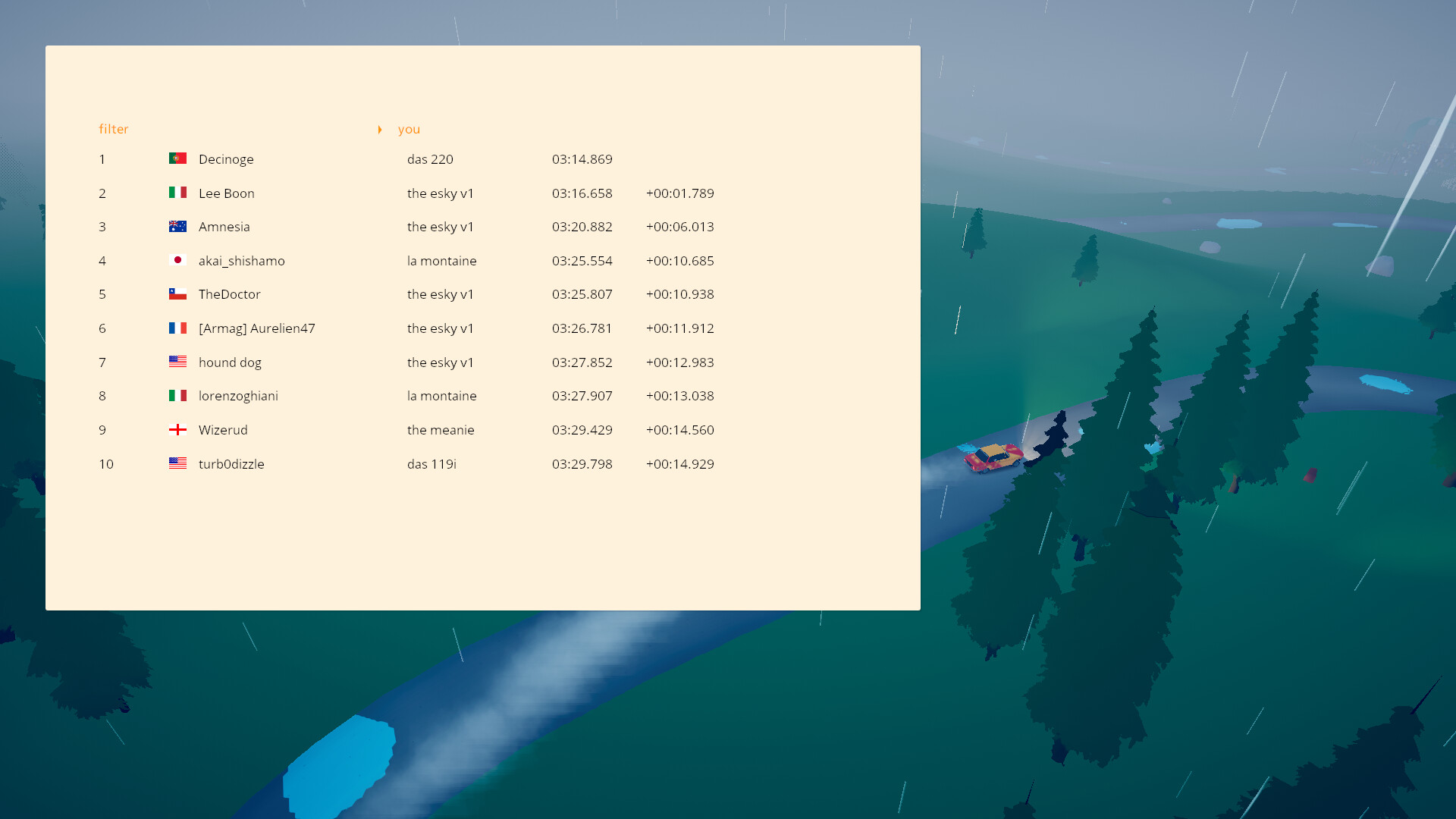 But I tried that car and in 3 tries… I got tha much time over the 1st place.