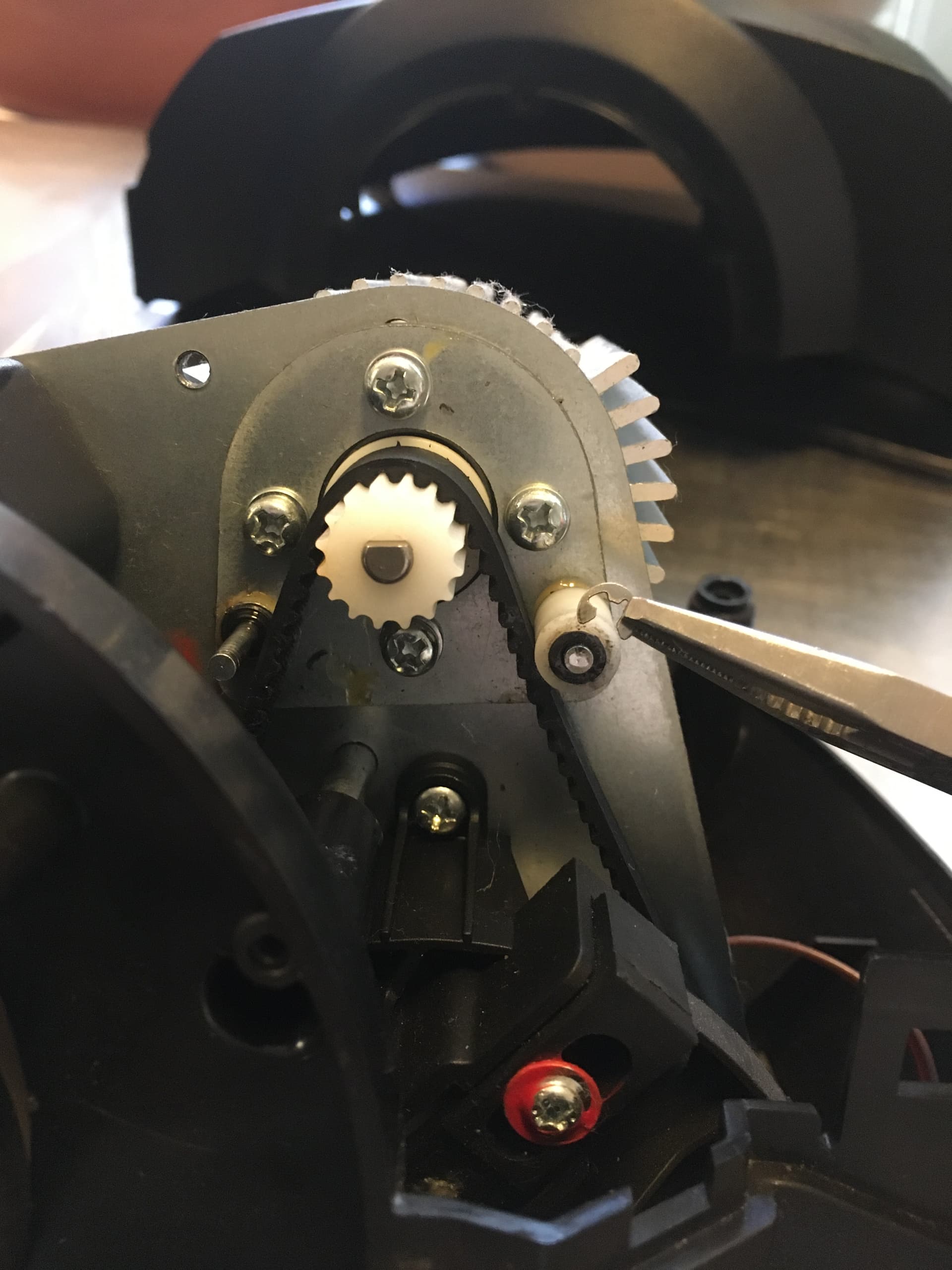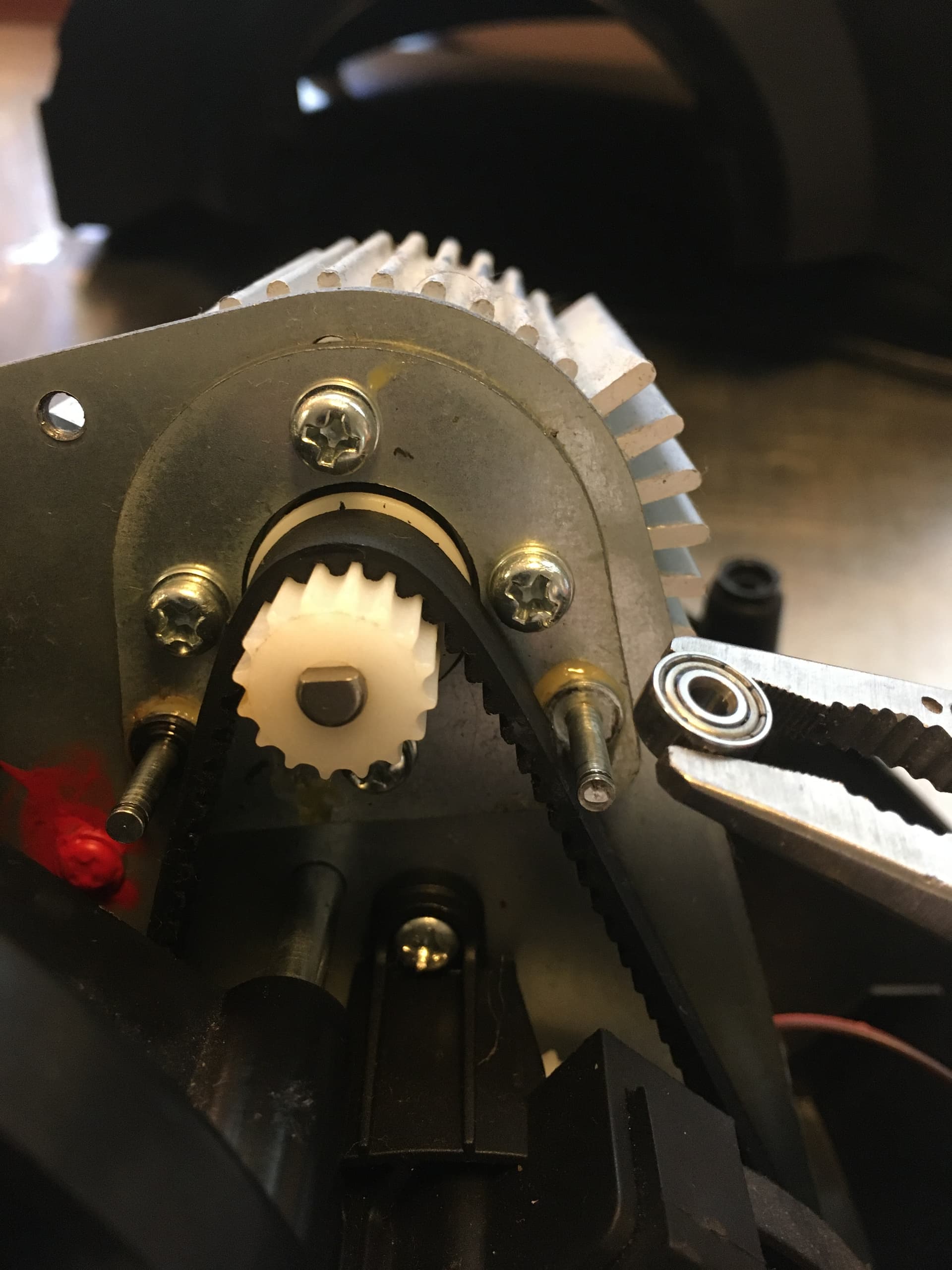 I replaced the plastic belt sliders(?) in my wheel with 3-stacks of 3x9x4mm metal bearings, a few days ago. It is slightly smoother now. Did I lose one of the tiny metal circlips after it suddenly pinged away into the nether-realm as I was trying to force it back on? Sure. Yes.