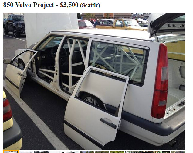 Yesterday’s CL find. A god damned Volvo 850 with a racing rollcage in it. It comes with the engine and the seller is in the process of finishing up the fabrication, all it needs is to be put back together. What a spicy swedish meatball. Imagine stunting on greying gen x microsoft execs driving their porshes at the HPDE in a station wagon.