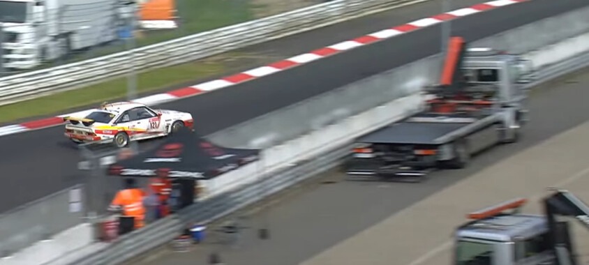biggest tragedy of the race: The Dacia Logan got totalled by a Porsche. the Logan is the SLOWEST car on the ring, it finished last year and became a fan favorite