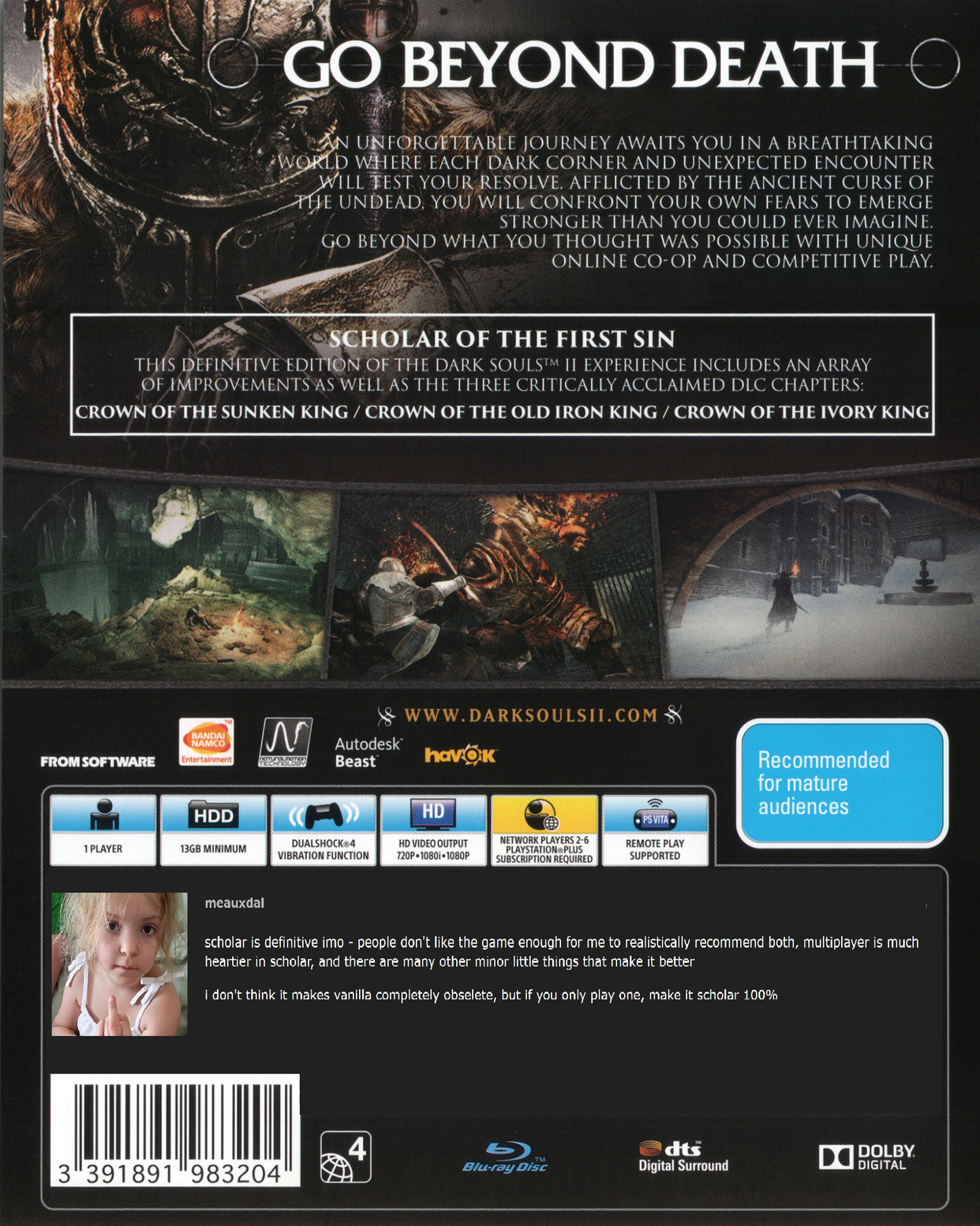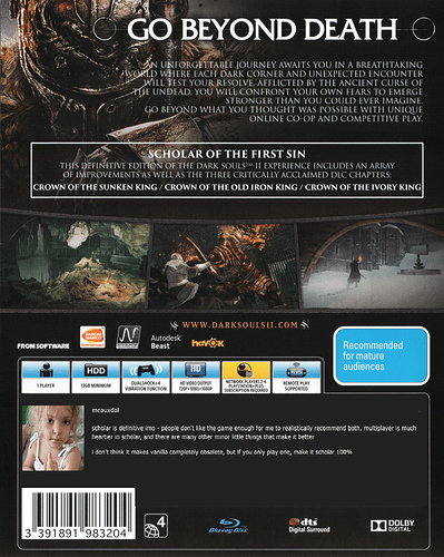 Re: PvP/multiplayer: i have no doubt that the DS2 PvP is better & more balanced than in the first game. I had a decent amount of fun messing around in it, for sure (the best thing about it is that you can actually do it most of the time). I also beat 1, 2 and Demon’s completely offline my first time through each. That’s where a lot of my perspective on how they each play comes from, multiplayer just isn’t the draw for me (and i prefer co-op anyway, all things weighed equal).