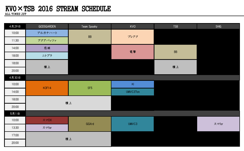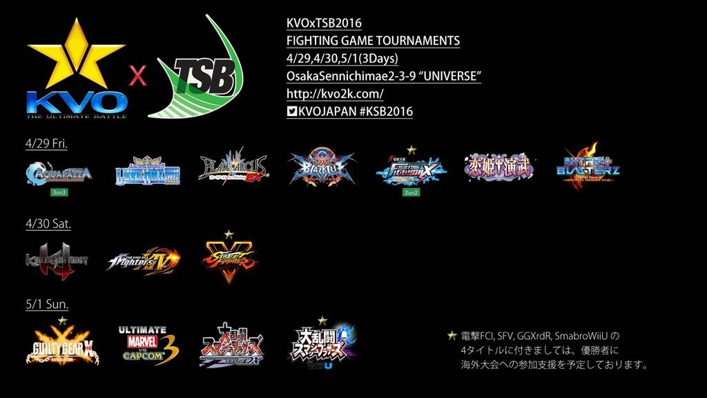 KSB2016 is this weekend. The first day streams are set to start at 10:00 AM Friday Japan Time so convert accordingly. For US folk that means it’s starts tonight (9pm for me on US EST). There will even be Killer Instinct and King of Fighters 14 on the second day! There are also tournaments for UMvC3 7-vs-7 and Saint Seiya: Soldier’s Soul.