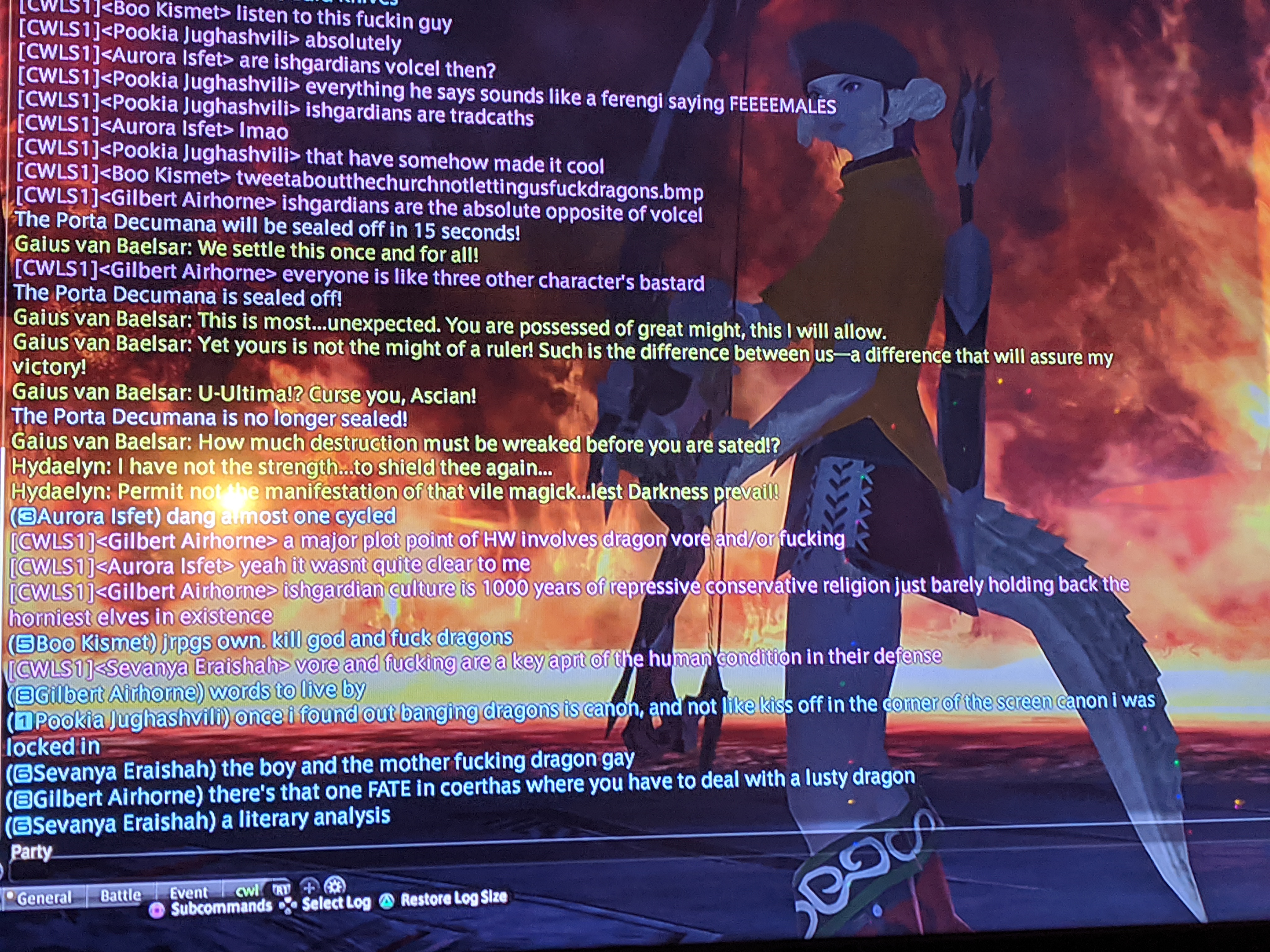 there was someone called Whyssler Whyth on Lamia who had the biggest clan (he definitely invited me, a rando he’d never spoken to, at one point) and would run around doing a custom emote on ppl in the Gold Saucer that was just “pants prank”