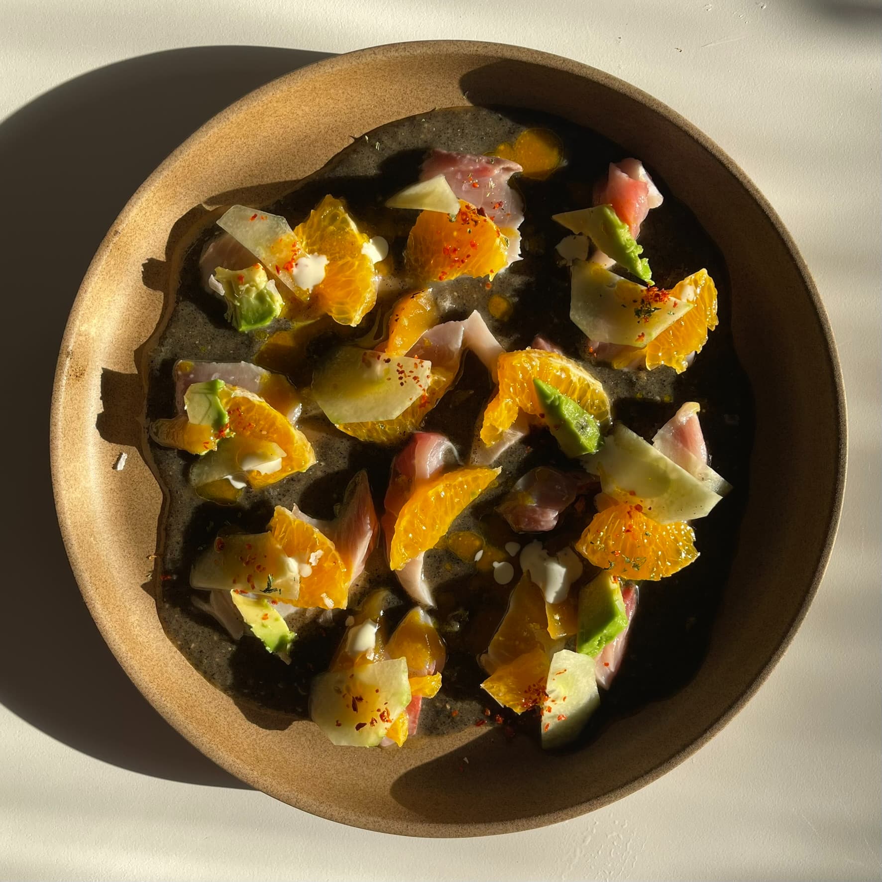 i think this may be the default beet salad, but: roasted beets, some kind of creamy dairy situation, citrus wedges/zest/juice, honey, and some crunchy nuts