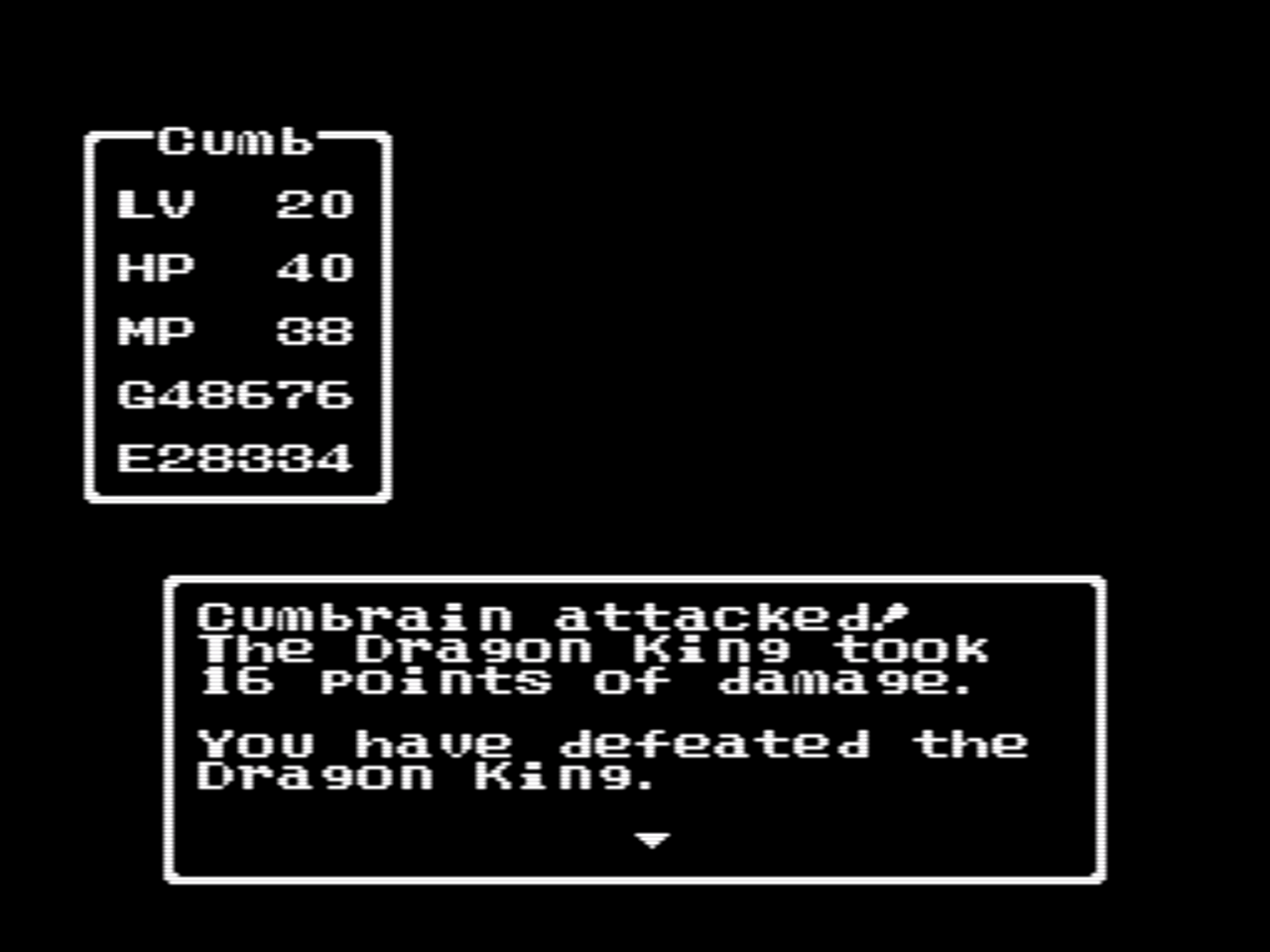 the more i think about it the more i like the first dragon quest. i cannot even describe the series of emotions i felt running into my very first metal slime, at level 20, on the way to the dragon lords castle to finish the game, only for it to flee instantly before the battle interface even appeared