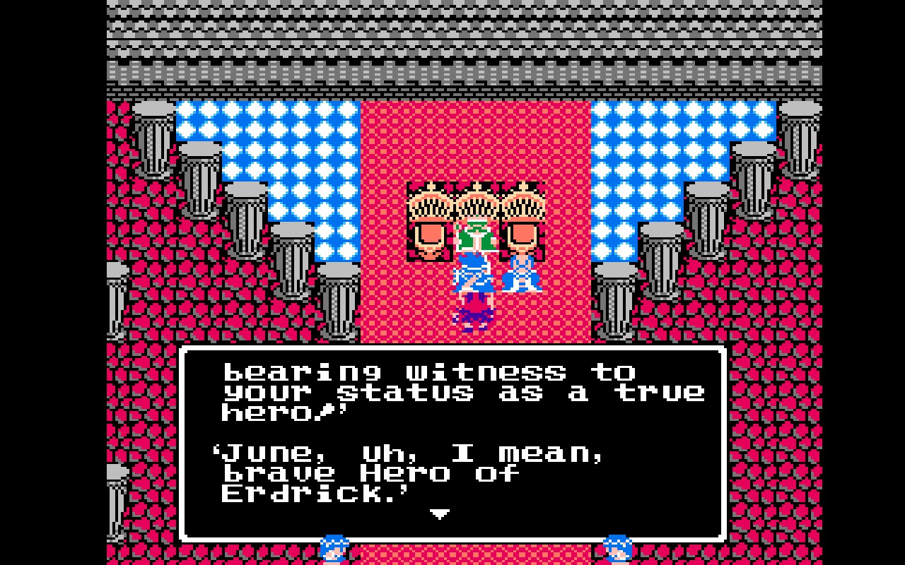 I’m gonna go for it, in Dragon Quest 1. There’s some stuff I’ll miss in the castle but I’m gonna do what I didn’t do in the old Switch version and have Gwaelin with me for the rest of the game.