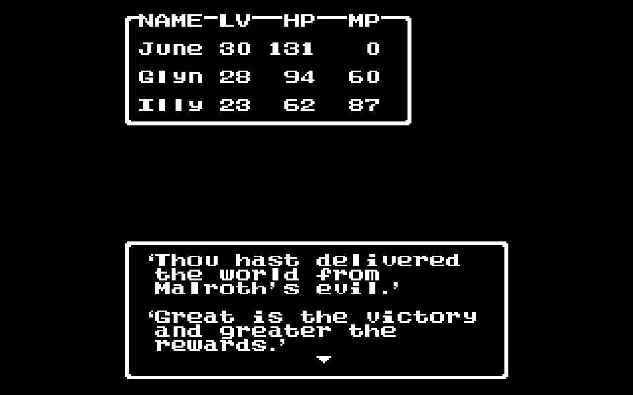 kinda tempted to do the Falcon Sword of Destruction glitch though: switch the Prince of Lorasia from the Falcon Sword to the Sword of Destruction and leave Hargon’s castle without dispelling the illusion, it resets to a Falcon Sword without resetting his stats, now you can attack twice with the strongest weapon in the game. i mean if the games not gonna play fair why should i!!