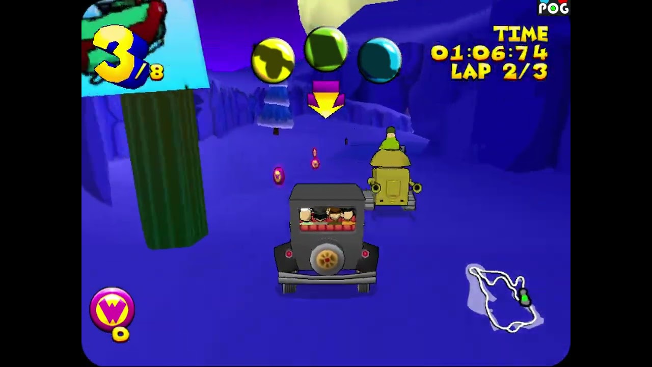 Wacky Races Starring Dastardly & Muttley (PS2) – PAL only; looks a little faster (doesn’t appear to be due to the 50 to 60 fps conversion since it’s regularly doubling frames–Ah hm the game does have a 60 Hz mode actually, also widescreen) than the US/PAL Dreamcast version (below) maybe?