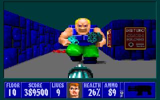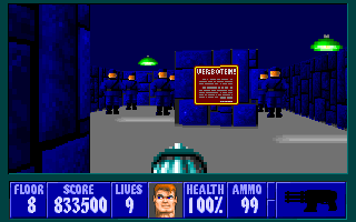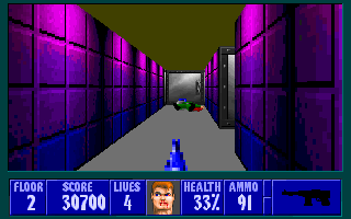 But ultimately it has all the same problems⦠huge maps with no flow, pushwall mazes, keys and compulsory paths behind pushwalls, terrible combat encounters, etc. And this one also has a new habit of putting enemies right around 90 degree corners. Thatās not clever!